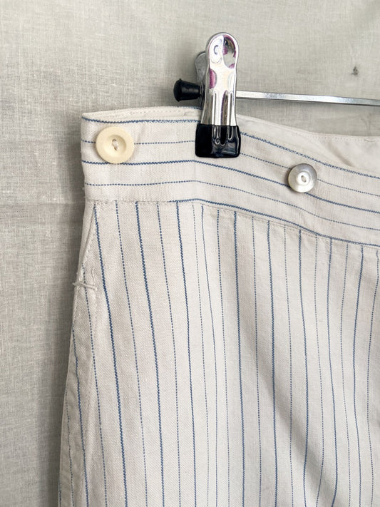 1940s Striped French Work Pants, Buckle Back, Size S