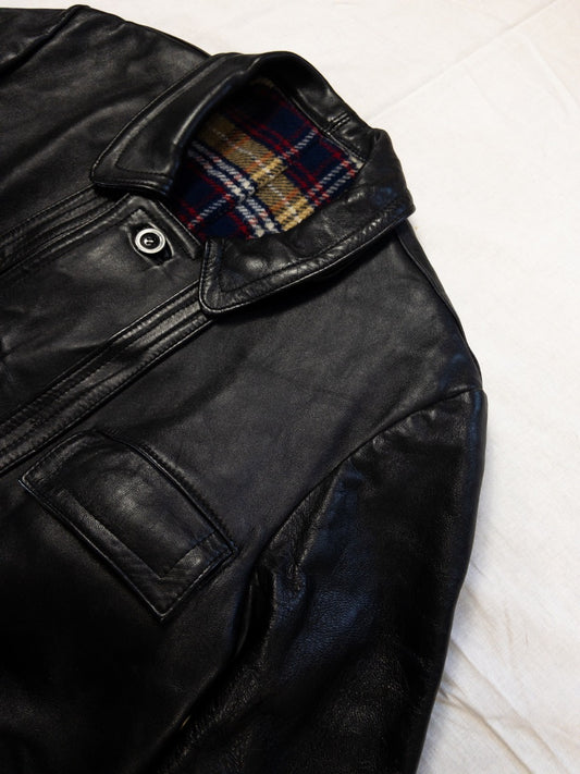 1980s Black Leather Bomber Jacket, Size S/M
