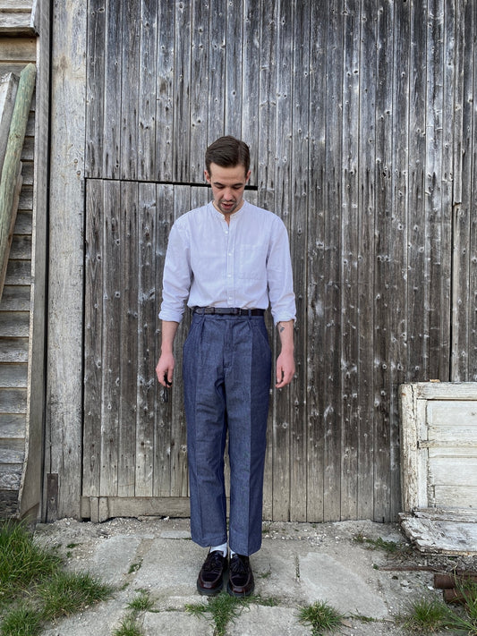 French Navy Denim Pleated pants, Deadstock, Size S to XL