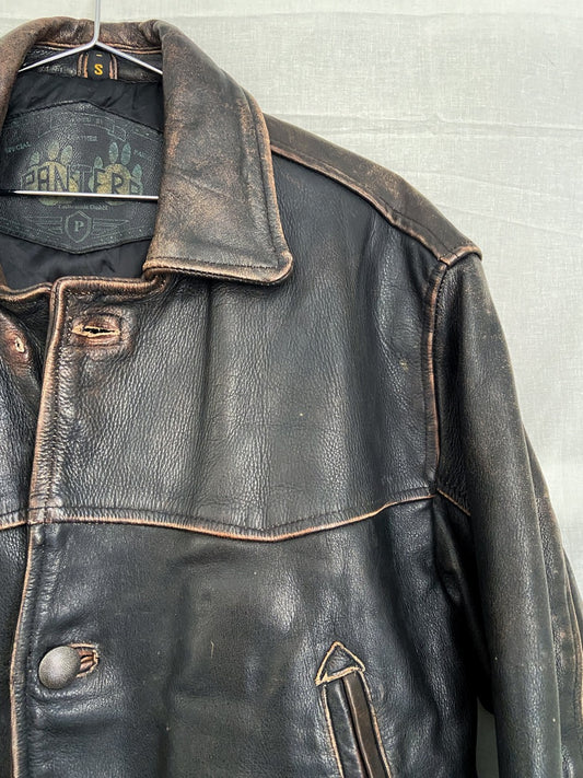 1960s French Fireman Black Leather Jacket, Size L/XL