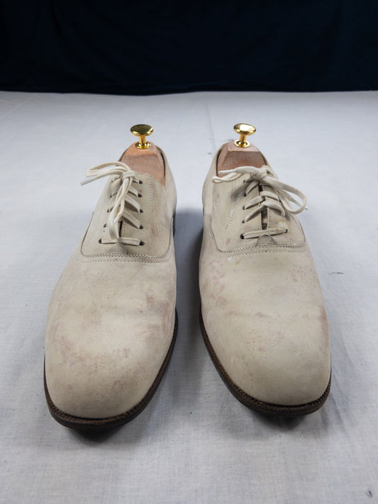 1960s French Marine White Leather Derbie Shoes, Size US 9 - EU 42