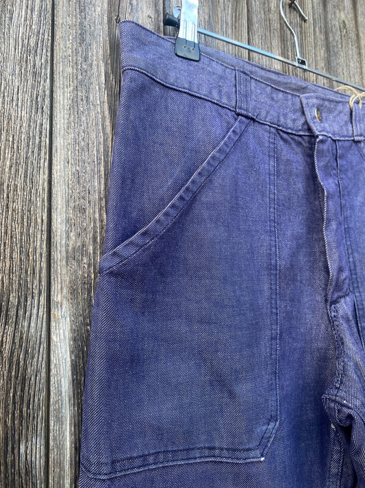 1980s French Denim Flaired Chore Pants, Deadstock, Size S/M
