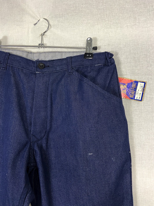 French Navy Denim Pleated pants, Deadstock, Size S to XL