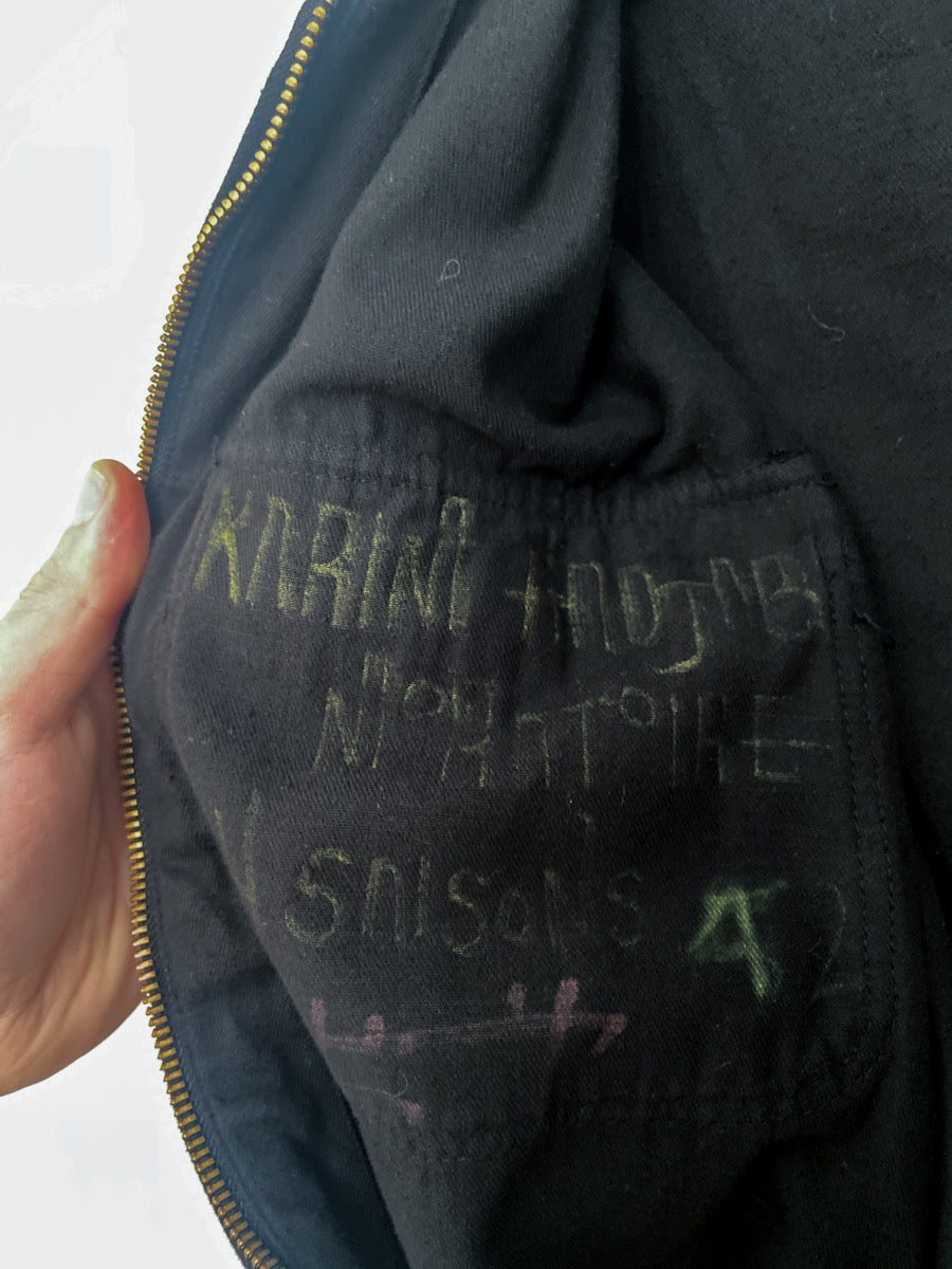 Made with a beautiful deep black twill fabric. Brass zipper.