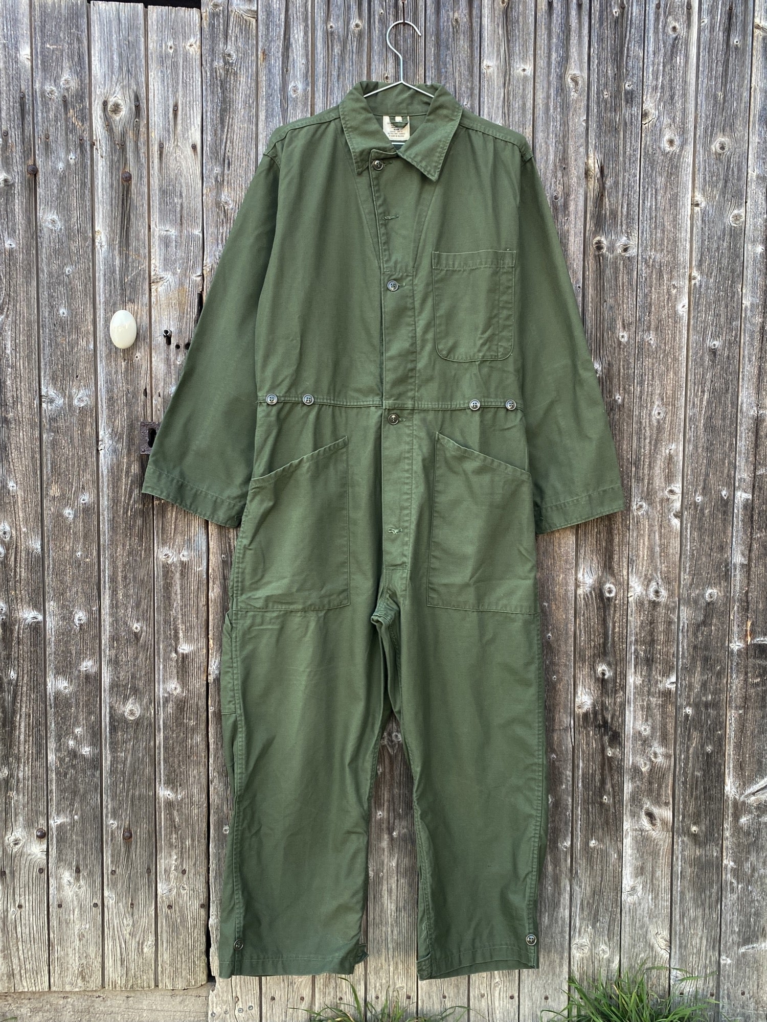 Jumpsuit version of the OG 107 Sateen Utility shirt and pants issued to the US Army during the Vietnam War. These ones are from the 1960s and 1980s.