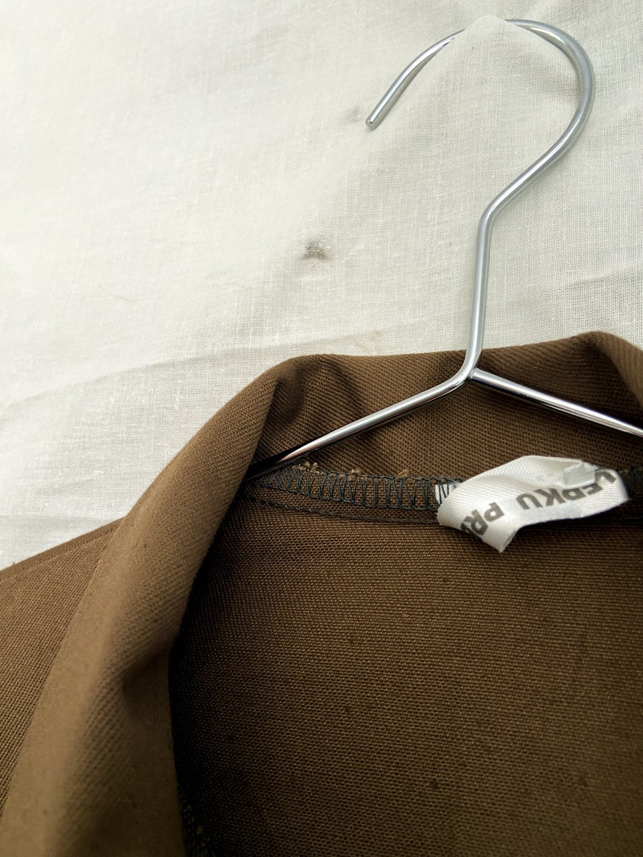 Made with a light cotton twill in the 1970s. Colors are between brown and olive green, traditional from Eastern Europe workwear.