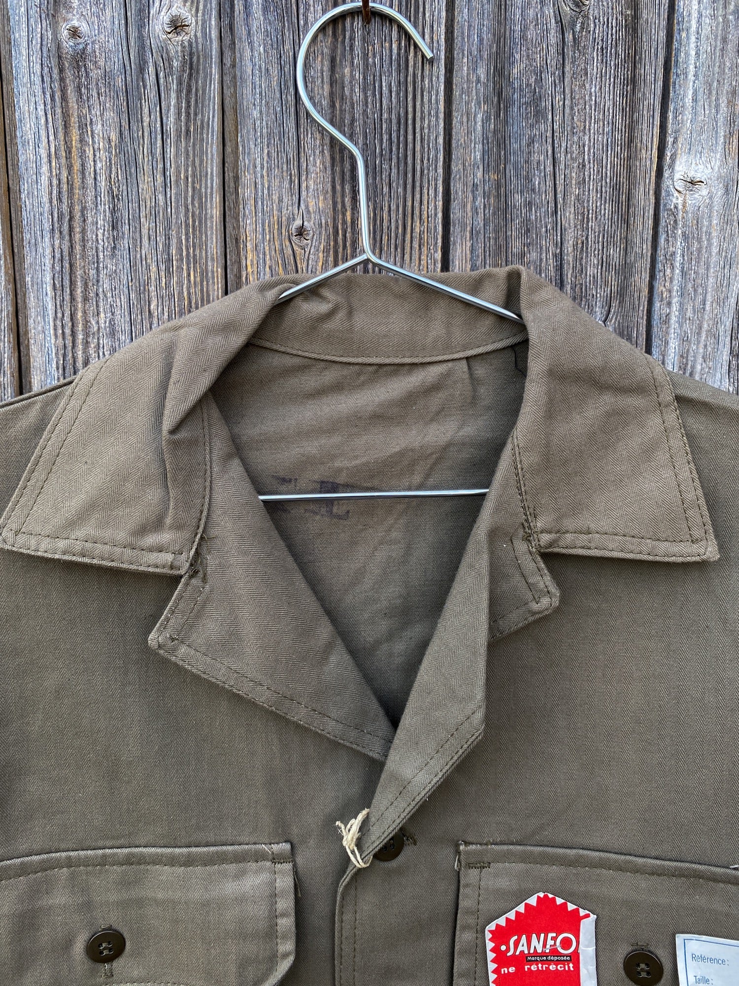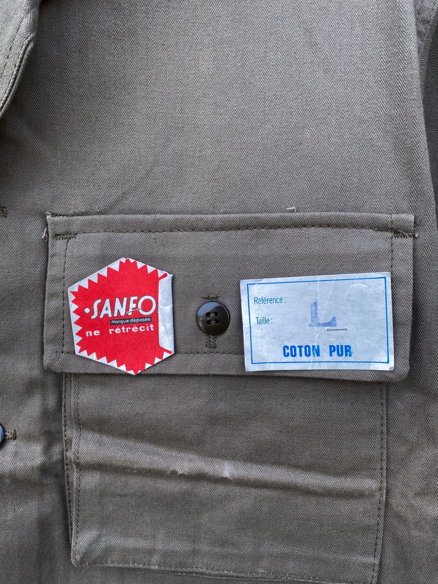 Super interesting jacket. Made by a French workwear brand in the 1970s, it was sold as a hunting jacket. But it’s a really good copy of the famous P43 HBT jacket from the US Army !