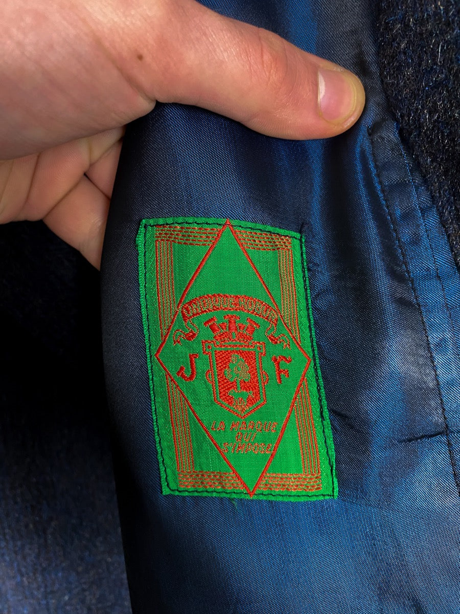 Beautiful overcoat coat made with some nice dark grey wool fabric, with some navy blue nuances.
