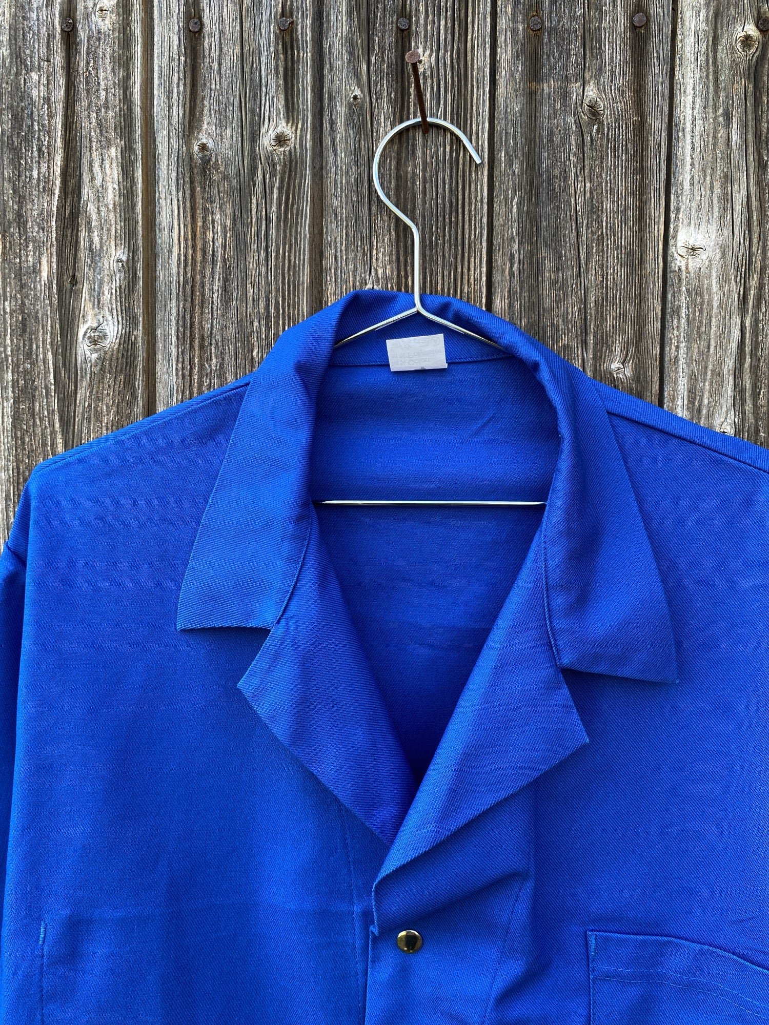 Light blue French shop coat or « blouse » made in the early 2000s.